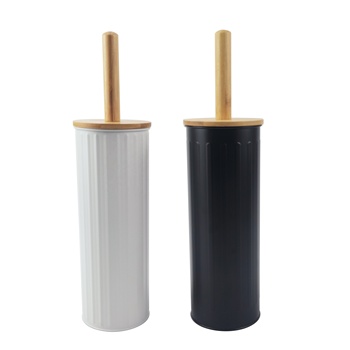 Porta scopino per wc maniglia quadrata in acciaio e bambù